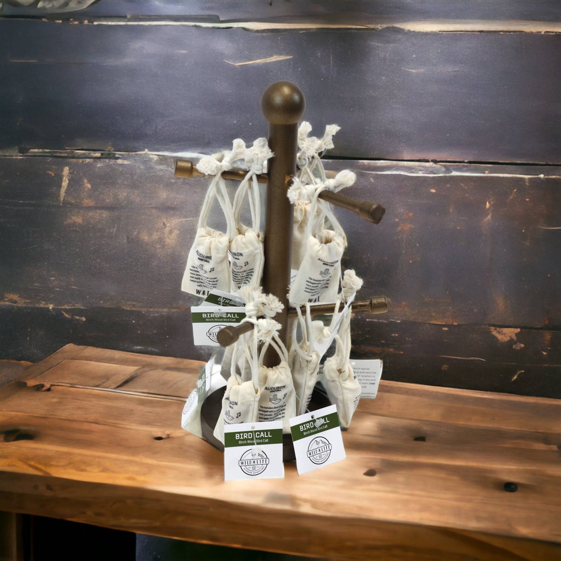 The original Audubon Bird Call consists of a custom engraved birchwood roller and a zinc plug. When twisted, this instrument will make a variety of sounds which attract wild birds. With reasonable care, and periodic re-application of rosin from the included capsule, the call will last a lifetime.