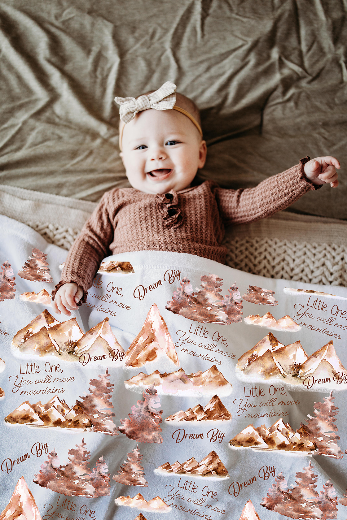 Blankets are made of minky fabric. Fun 'little one' print on the front and plain white on the back. Sizing: 30"x40" - perfect for babies and toddler.