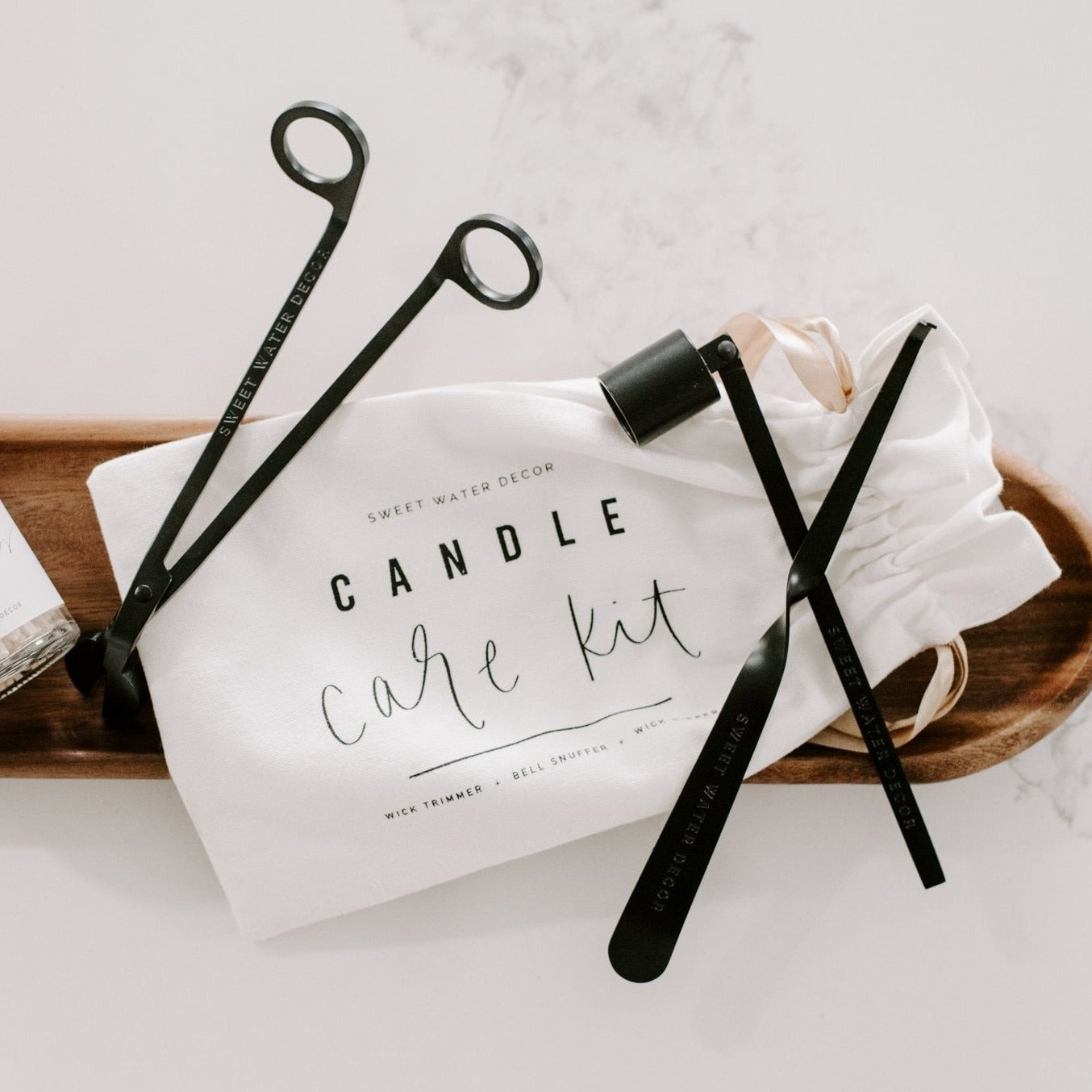Proper candle care is essential to the longevity of every candle. Ensure the your candle has the best care with our candle care kit, featuring wick scissors, wick dipper, and candle snuffer. Each kit arrives in a hand lettered bag for safe keeping.