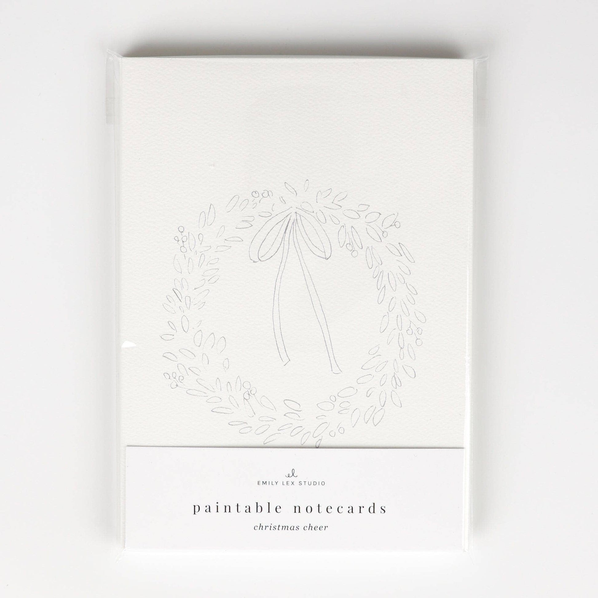 Paint your own special Christmas cards to send to loved ones this year! Sketches are printed on the front of each card with simple instructions for you to paint in with watercolors. You'll receive eight cards with two of each illustration: wreath, snowglobe, gifts, Christmas tree truck. Perfect for artists of all ages!