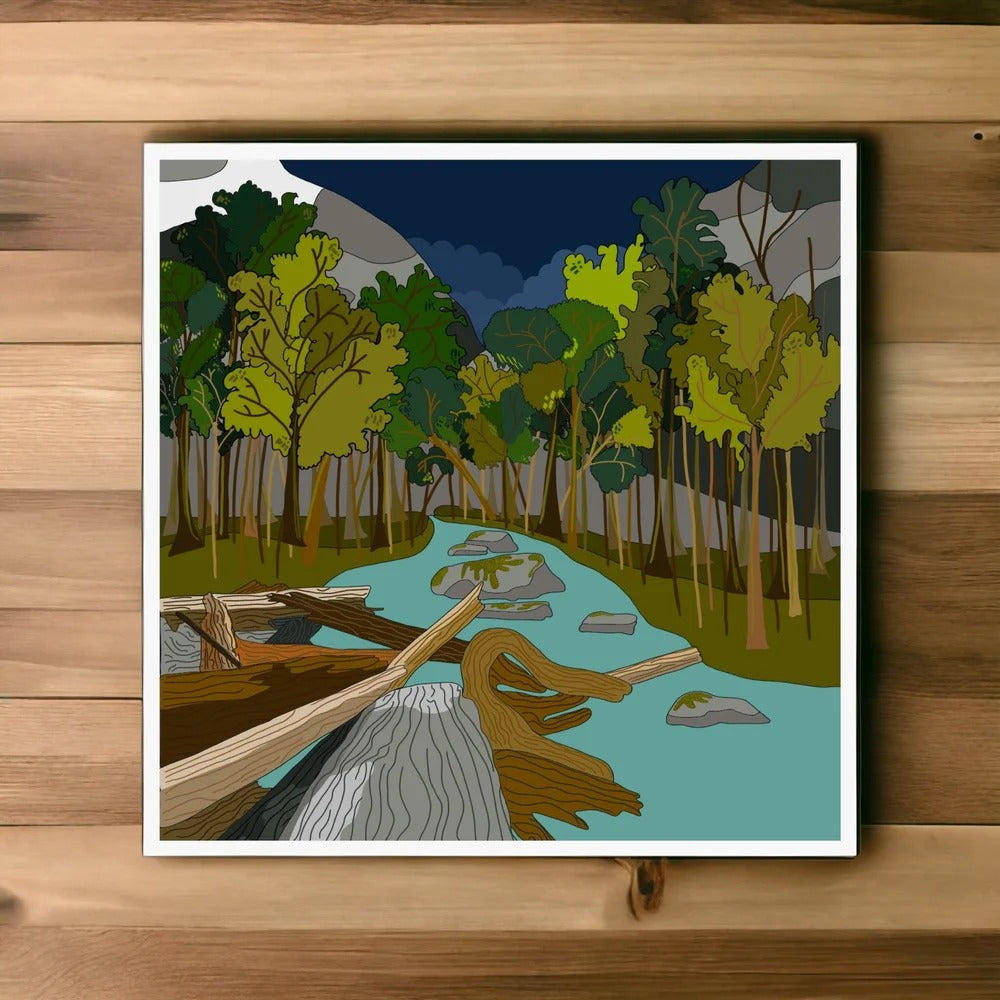 8x8 print of the Hoh River Valley in the Olympic National Park.