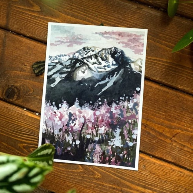 The iconic Port Angeles landmark, Hurricane Ridge. 5x7 art print of an original watercolor painting by WA state artist, Cedar Watercolors.