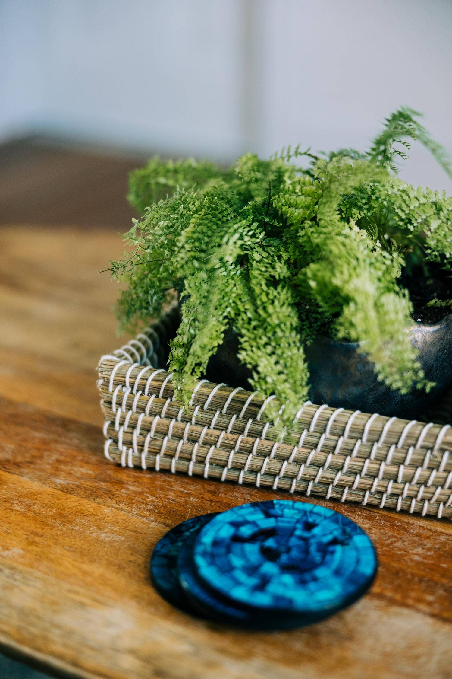 Whether corralling napkins on the family table, or outgoing mail in the office, you can count on this woven grass basket to elevate your space.