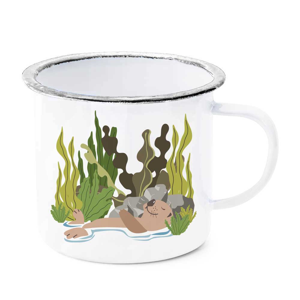 Our Lazy Otter with Plants Enamel Mug from Potluck Press is more than just a coffee mug. It's a 10 oz enamel camping mug that embodies our family-run ethos of love, humor, and excellence.