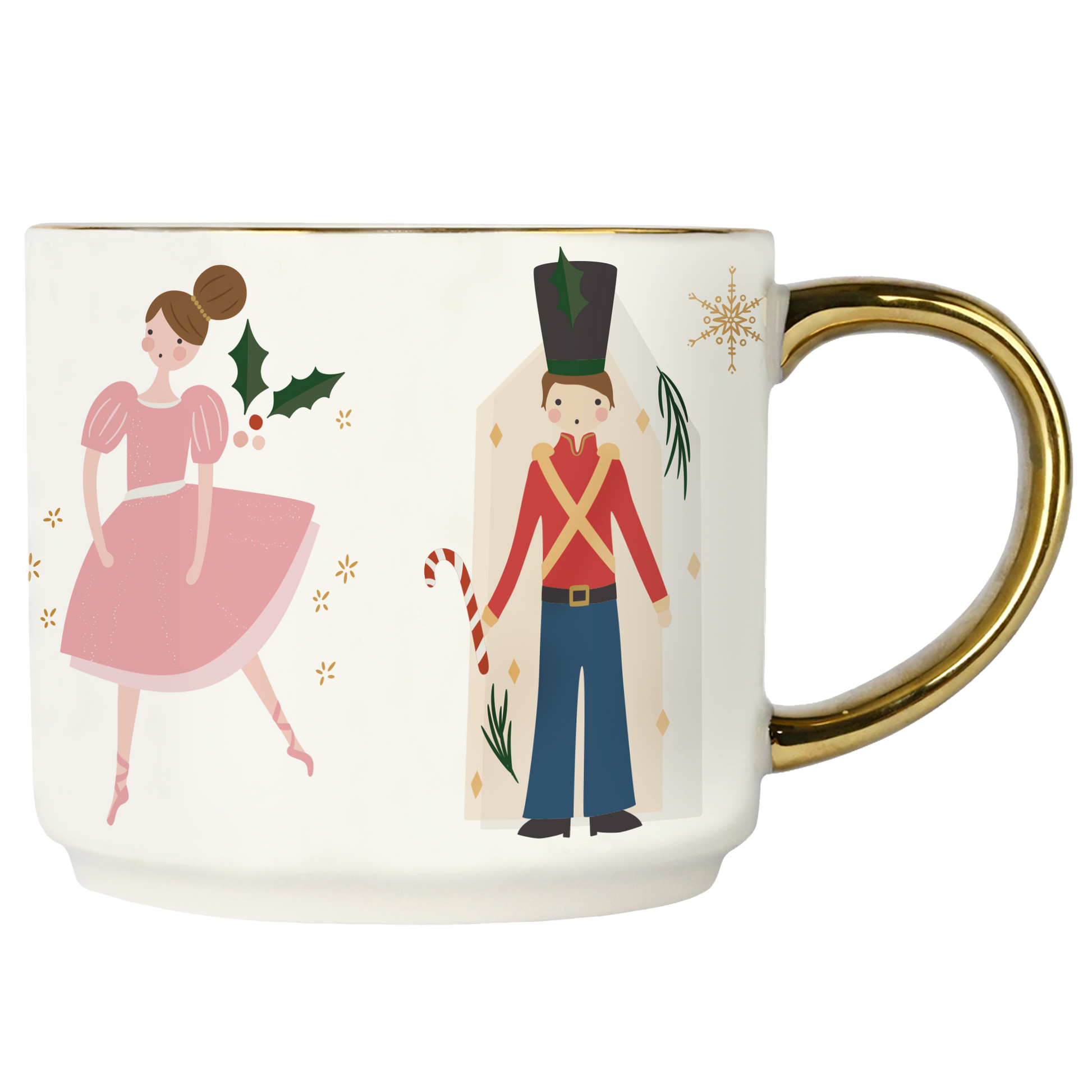 DETAILS: • 14oz Fine Bone China • Size: 3.20" H x 3.75" W (5.45" w/ handle) • Original Design: Nutcracker • Design All Around Mug • Real Gold Details on Rim and Decal • Stackable with other 14 oz Sweet Water Decor Gold Handle Mugs • The design printed on each mug may vary slightly from one mug to another • Designed in the USA, Imported
