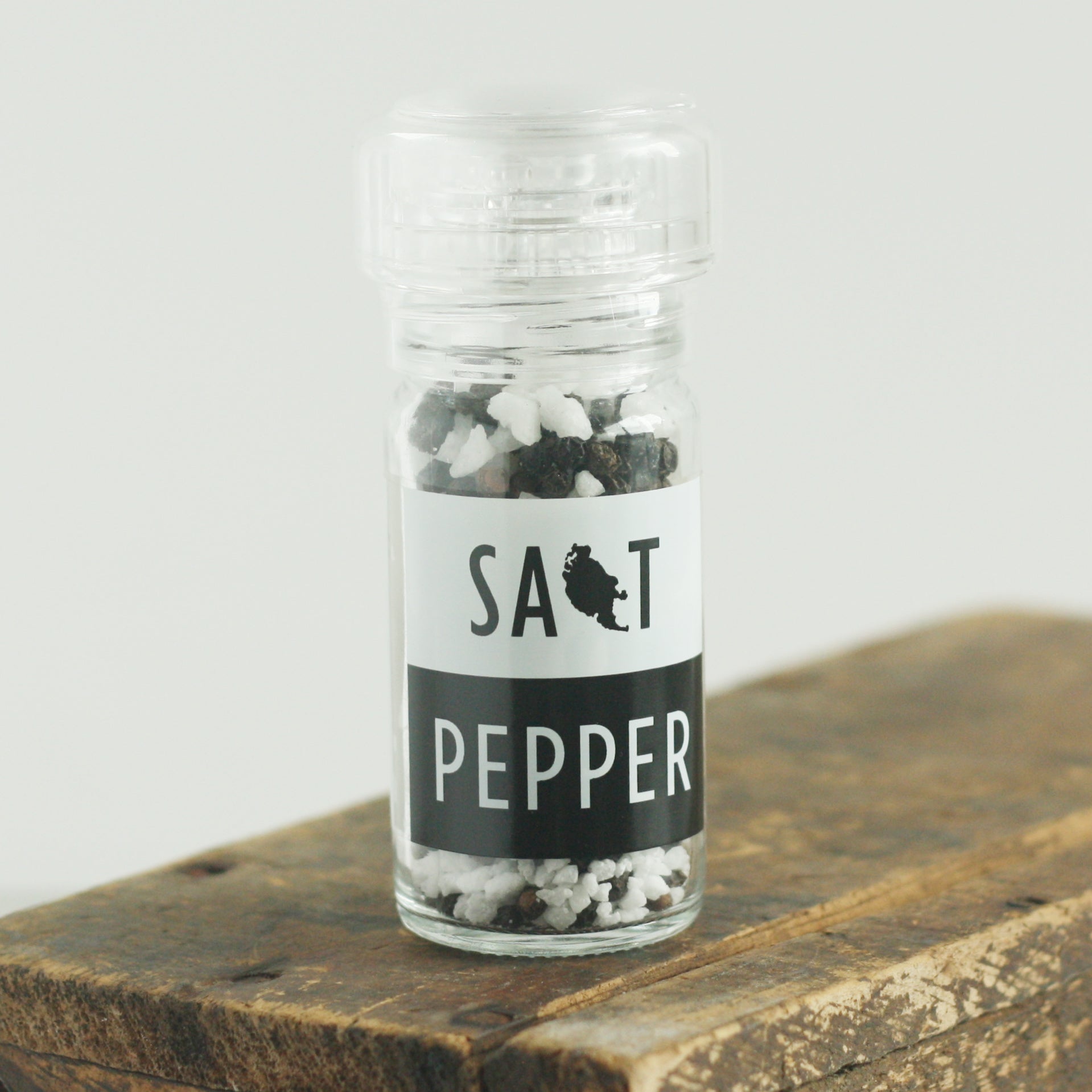 Ingredients: Coarse San Juan Island Sea Salt, Organic, Fair Trade Black Peppercorns