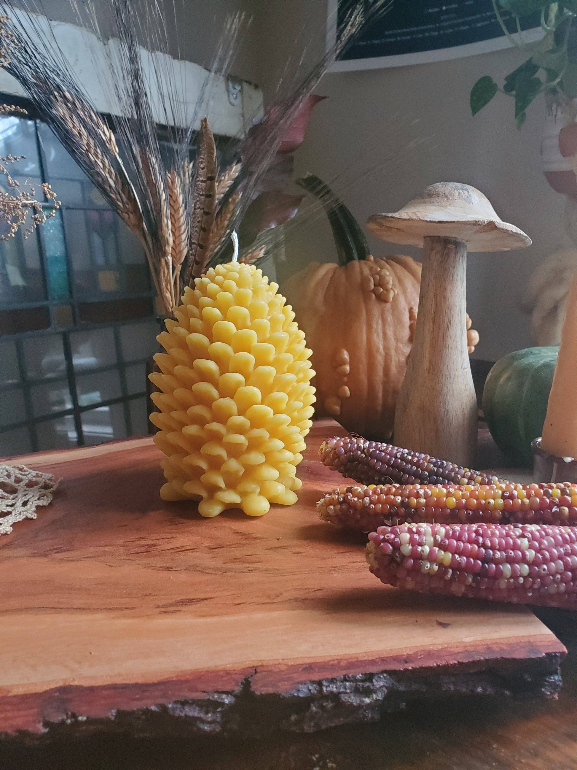 5"x3". They are all made from pure beeswax. Beeswax is a high quality wax ,no additives are added Beeswax Candles burn slowly naturally. Beeswax burns longer, cleaner, and brighter than any other wax. Beeswax candles are an allergy friendly, release negative ion which help clean the air, and produces no black smoke as seen in other wax types. These candles had a wonderful natural scent that comes from the natural honey that the wax contains.