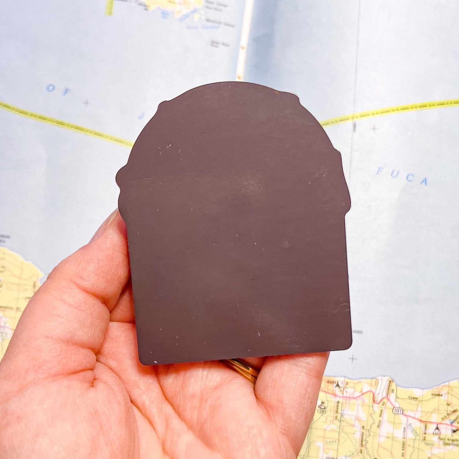 The entire backside of the magnet is covered in a thin layer of magnetic backing. The finished product only sticks off the fridge or other magnetic surface about less than 1/4”.