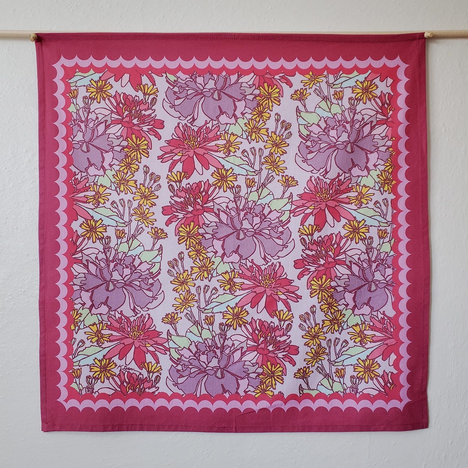 This warm purple design comes from an original linocut artwork, making this a truly unique design pattern and gift item. This is a digitally printed design that can withstand many washings and the cotton fabric is soft an absorbent.