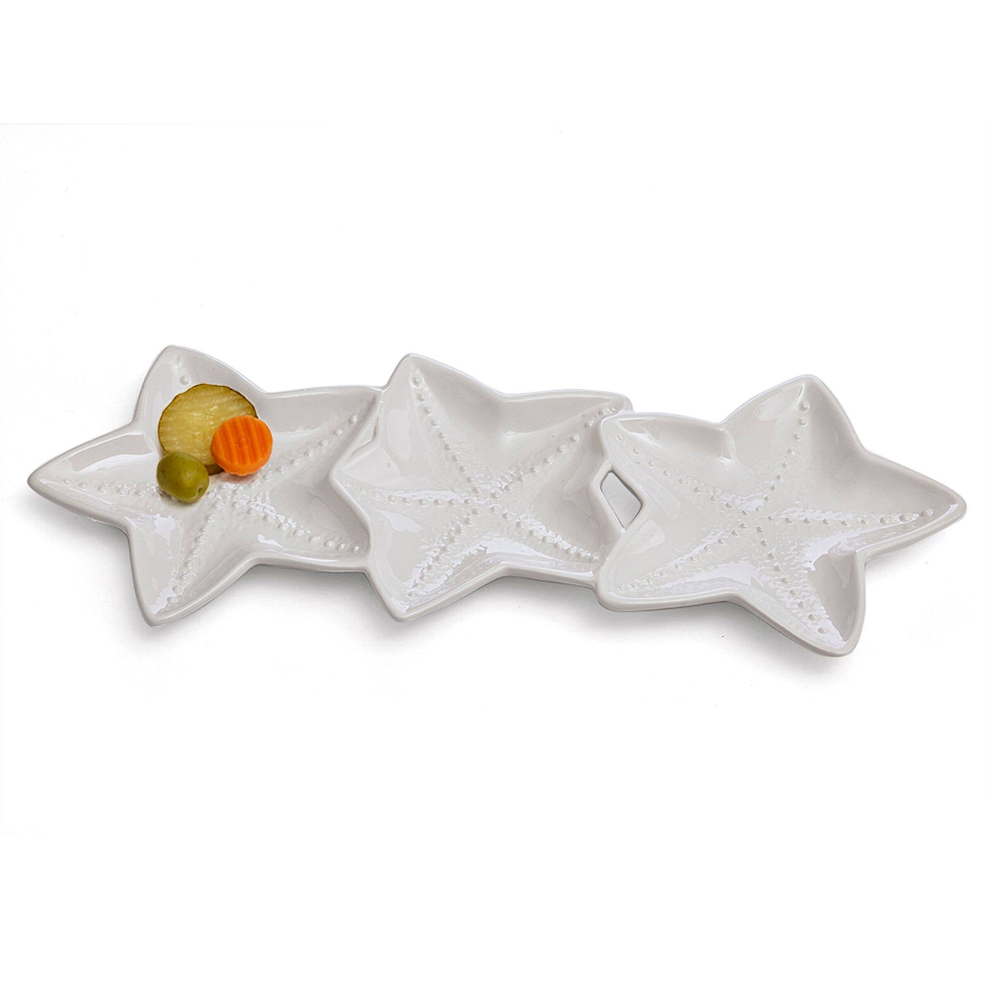 This Ceramic White Star Fish Triple Dish measures16.3"Lx6.3"D