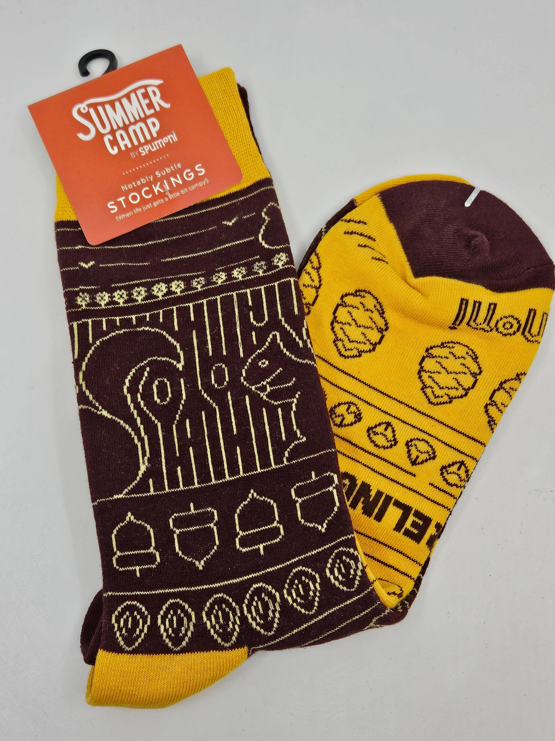 When we went to camp, Momma always said, “Don’t forget yer socks and underwear.” We think these are wise words to live by, because, after all, when the world is all cattywampus, MOMMA KNOWS BEST. And what better socks to pack for an adventure in the woods than these beauties? Unique right and left foot designs | Gibbs Smith socks are made of a 70% cotton, 28% polyester, 2% elastic blend. One-size-fits-most: Women 7.5–12; Men 6–11. Studio Artist: Jorrien Peterson, Salt Lake City, Utah.