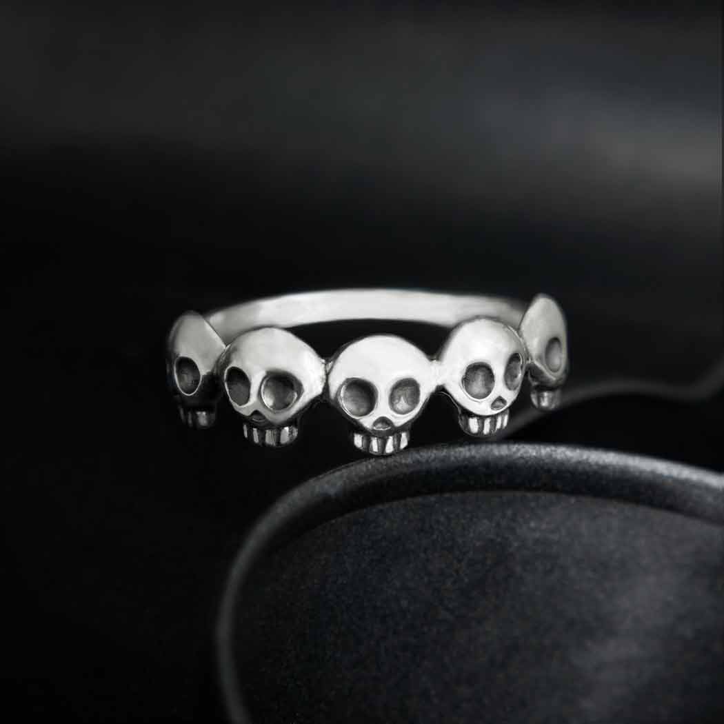 Sterling Silver Five Skull Ring