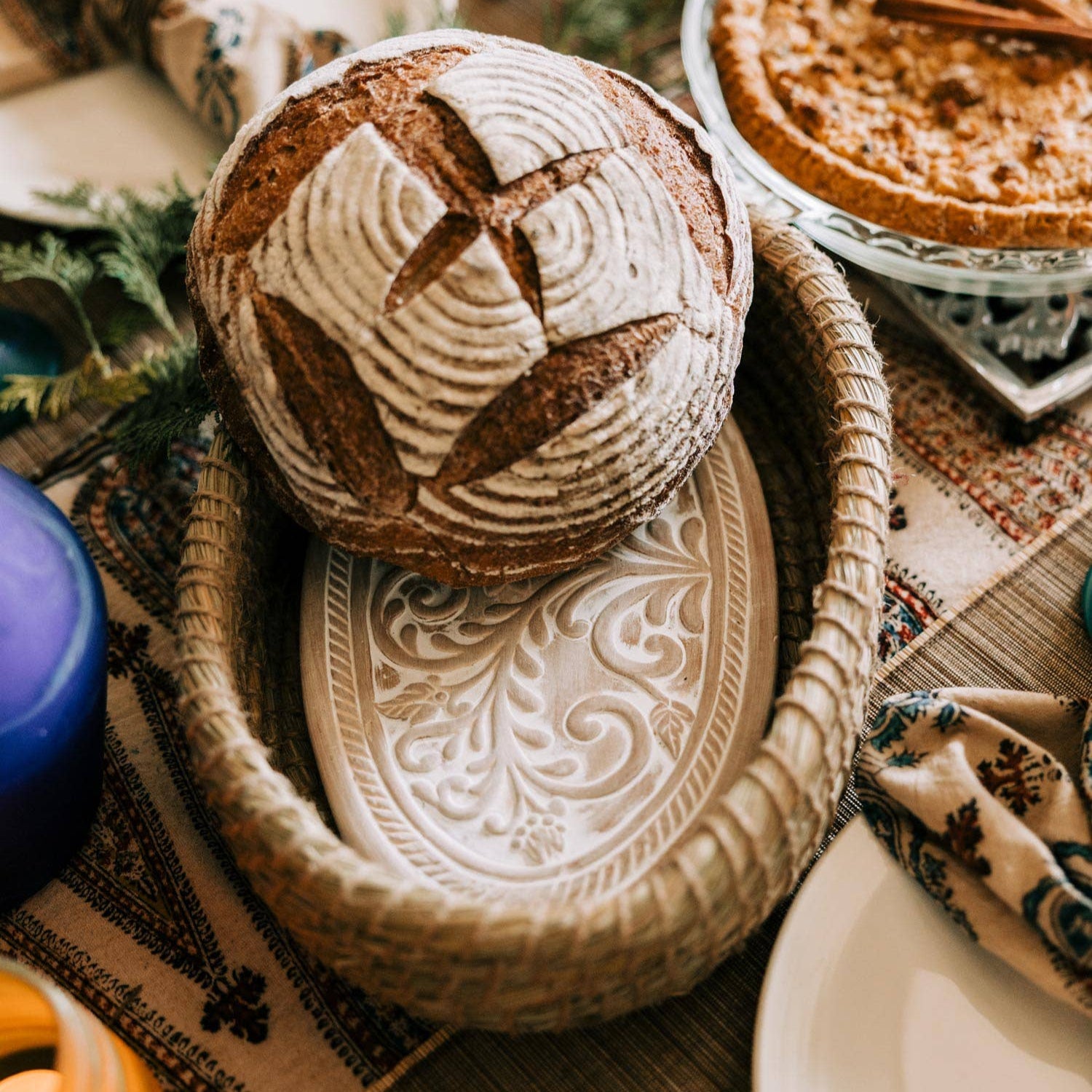 Keep your bread toasty warm in the Toasty Bread Basket. The handcrafted and whitewashed terracotta insert can be warmed in the oven, then set in the handwoven kaisa grass basket. Add a liner, then your bread and you're ready to serve.
